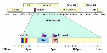 Thermal, or infrared energy, is light that is not visible because its wavelength is too long to be detected by the human eye; it is the part of the electromagnetic spectrum that we perceive as heat. In the infrared world, everything with a temperature above absolute zero emits heat. | |||